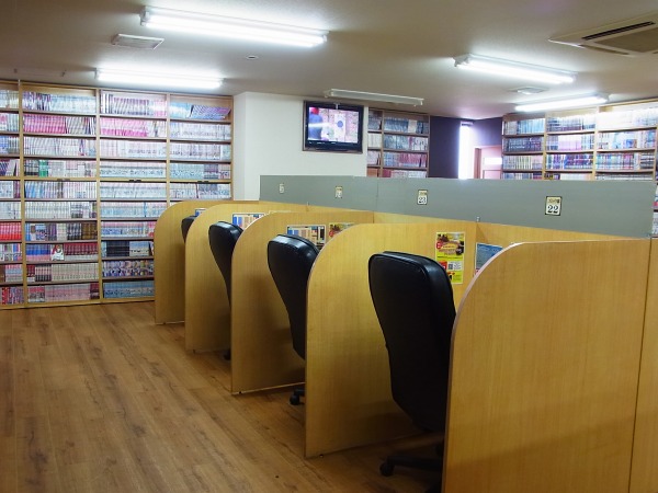オープンコミック席・テーブル席・マッサージブースがあり、マッサージブースは個室で早いもの勝ち!!