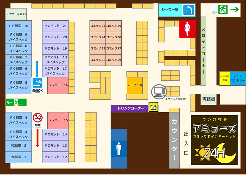 漫画喫茶・インターネットカフェ マンガ喫茶 アミューズ